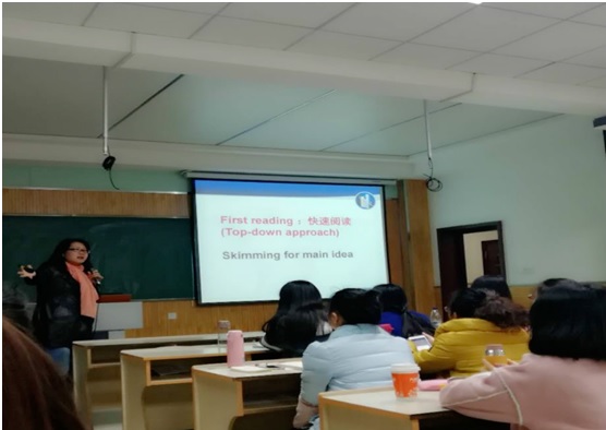 11月15日晚19:00,在教学八楼8106教室,王兰英老师为永利官网硕士研究生作了题为“中学英语阅读教学活动设计”的专题讲座,2017级学科教学英语(专业)硕士研究生聆听了本次讲座。首先,王老师为大家简单介绍了当前英语教学中阅读教学的现状及存在的问题;其次,王老师从英语教学的核心目标,具体的教学过程及教学活动设计的原则和策略等方面为大家提出了建设性的意见和建议。讲座历时两个小时,受到了同学们的普遍好评。