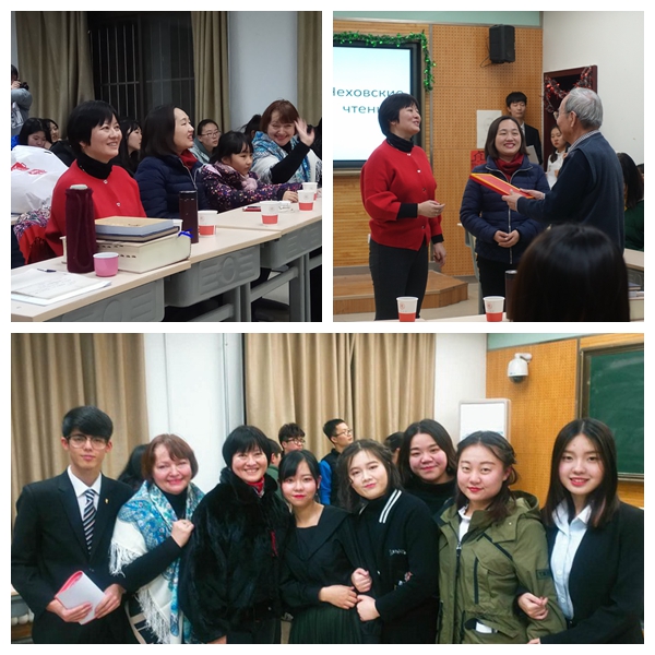 1月5日永利集团3044am官方入口俄语系、永利集团3044am官方入口俄语中心顺利举办“契诃夫阅读日”,我系师生欢聚一堂,共同领略作家契诃夫的文采魅力。师大俄语系师生用手绘,话剧,诗朗诵,歌曲的形式表达对作家崇高的敬意以及对俄语的热爱,整个活动气氛热烈,异彩纷呈。永利集团3044am官方入口鲁燕副院长、永利集团3044am官方入口原公共外语教学部俄日法教研室主任陈斌教授出席本次活动并致辞。