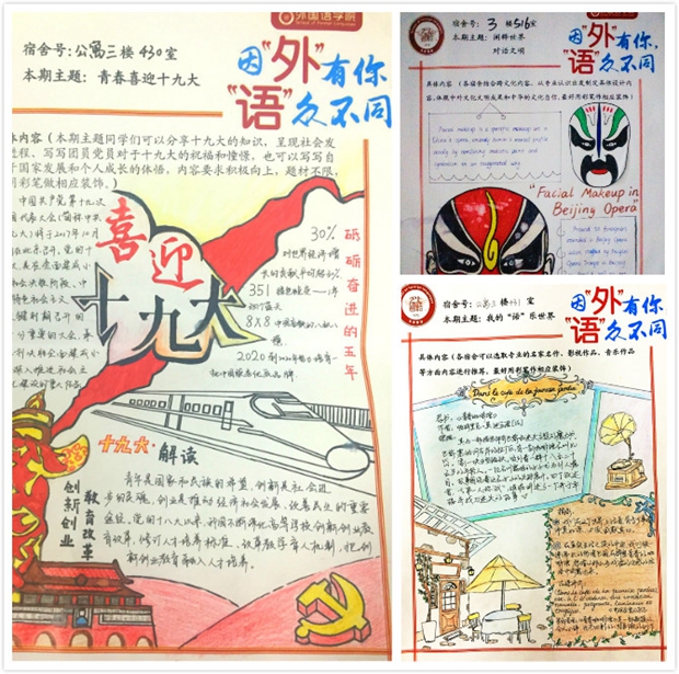 结合学风建设,永利集团3044am官方入口以学生专业学习、思想交流、知识拓展、心理健康为主要内容,面向全体学生定期开展“因‘外’有你,‘语’众不同”主题门贴设计评比活动,促进学生的自我学习和沟通分享。自今年3月起,“期末总动员”、“专四备考集锦”、“定位自我,成就未来”、“沐浴春光,悦纳自我”、“毕业季,我们整装待发”、“喜迎十九大”、“全心全力,备战大学第一考”、“战胜拖延症,我们在行动”、“新时代,逢其时,有作为——学习贯彻十九大精神”、“坚定目标,勇往职前,成就青春梦想”等16期主题分享得到了同学们的积极响应。每个宿舍都参与其中,精心设计分享内容,共计1200余张。学生们通过对主题的理解、设计、分享、交流和评优,不仅强化了专业知识,同时形成了思想交流的良好氛围。