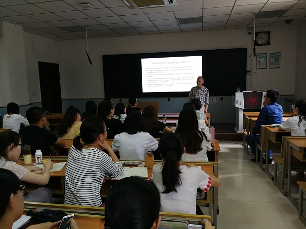 2018年6月7日,美国宾夕法尼亚州西彭斯堡大学传播系终身教授吕新安受邀来永利官网,做了题为“著名英语演说家的语言策略”的讲座,通过大量例证讲解了说话的艺术以及著名演说家使用的语言策略。被引的演说家包括Martin Luther King, John F. Kennedy, Malcom X 等人。本次讲座由英语系主任吕敏宏老师主持,学院师生代表聆听了讲座。