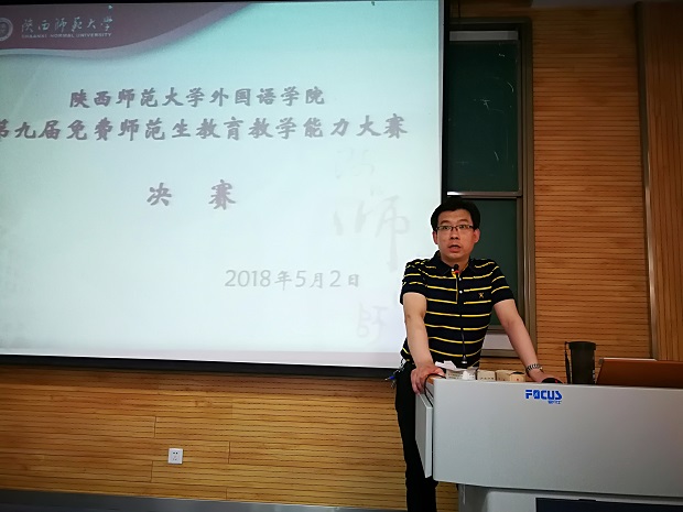 2018年5月2日下午,永利官网英语系师范专业的同学在5105教室举行了第九届师范生教学技能决赛。刘全国副院长出席并讲话,鼓励同学们珍惜机会,磨练教学基本功。本次决赛特邀魏军梅老师、崔琳老师、马萍老师、杨金梅老师、刘丹老师 、吕敏宏老师,以及外教 Reacheal老师担任评委。