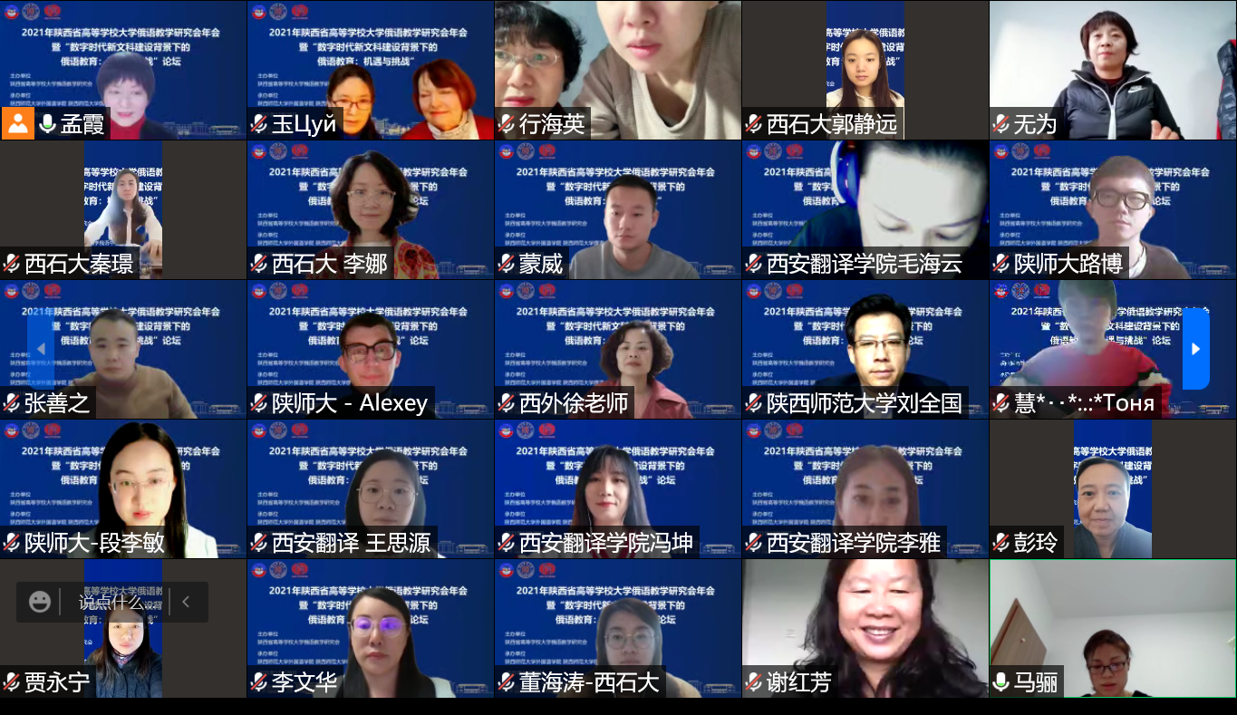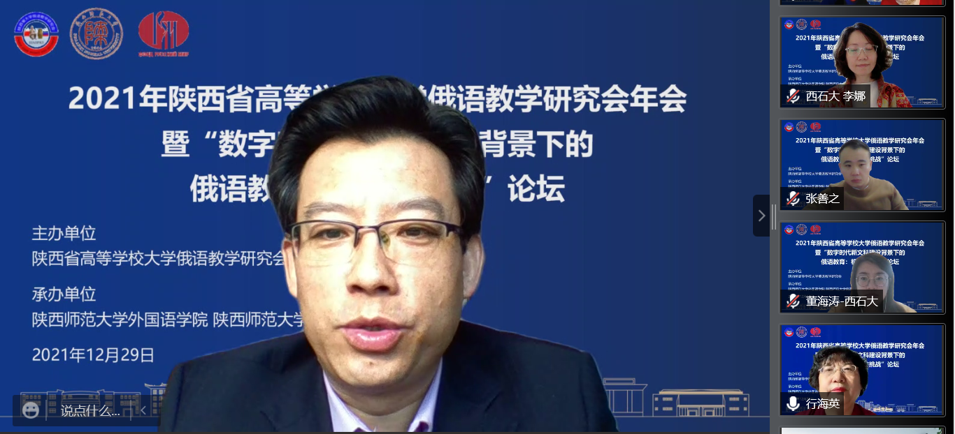 12月29日,2021年陕西省高等学校大学俄语教学研究会年会暨 “数字时代新文科建设背景下的俄语教育:机遇与挑战”论坛以线上形式成功举办。本次会议由陕西省高等学校大学俄语教学研究会主办,永利集团3044am官方入口、永利集团3044am官方入口俄语中心承办。来自中外高校及教育机构百余名学者和师生线上参会。