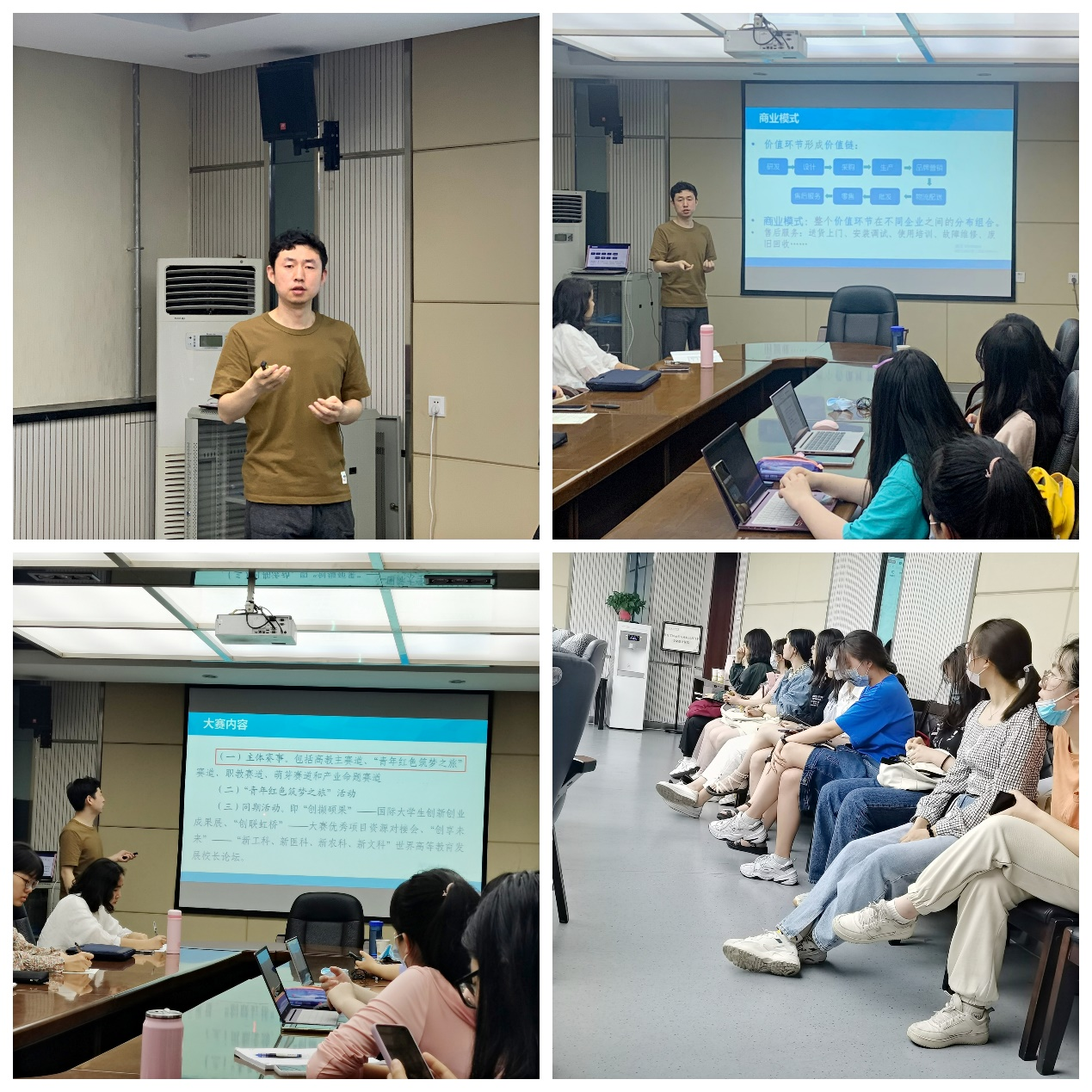 5月20日下午,永利集团3044am官方入口“互联网+” 大学生创新创业大赛校内选拔赛赛前培训会在教学六楼一层会议室举行。培训会由2021级辅导员田毓霖主持,永利官网参加本届“互联网+”的参赛团队负责人参加赛前培训会,部分学生也来到现场进行旁听学习。