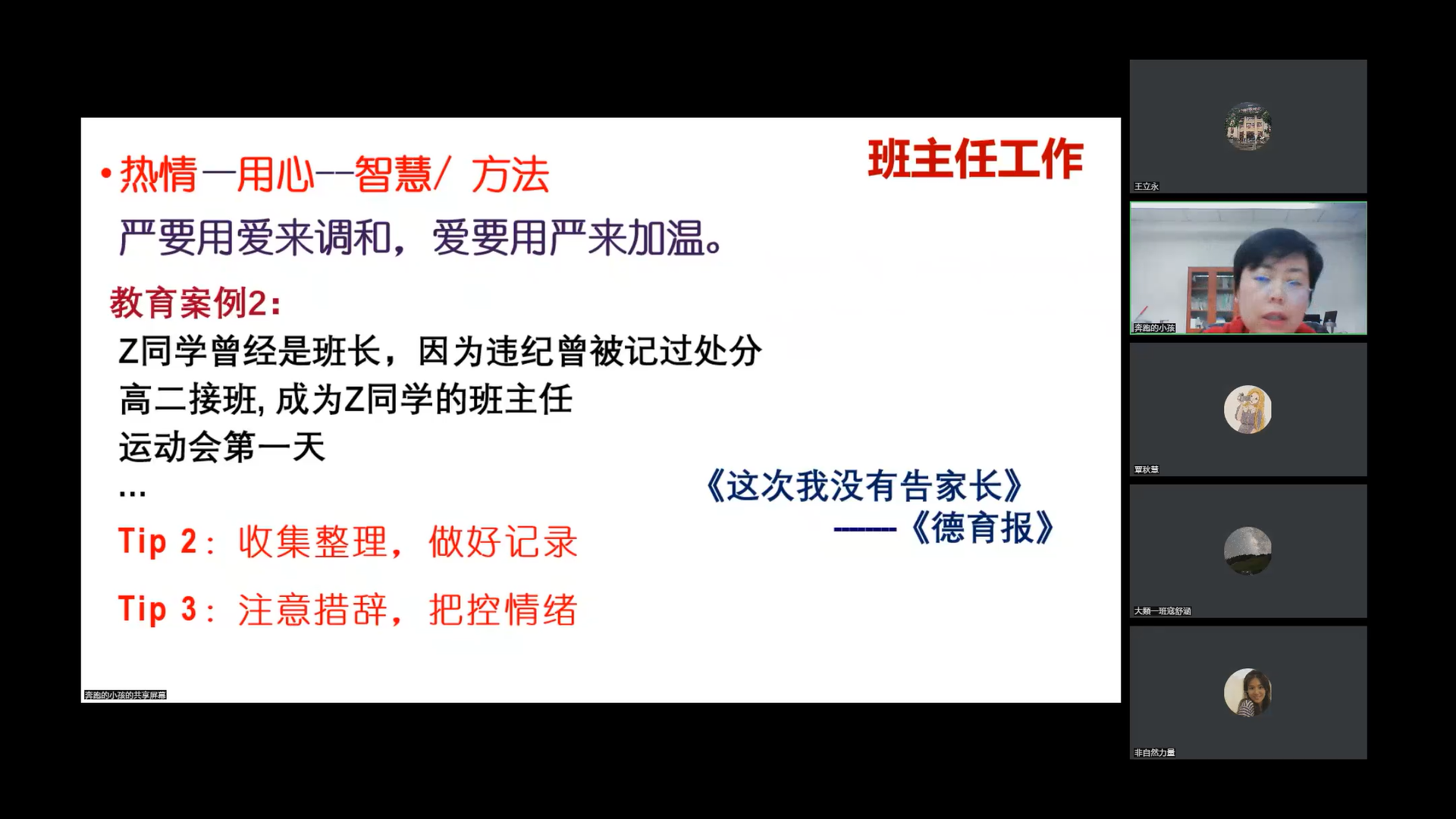 整整两个小时的讲座浓缩了王老师将近二十年一线教学经验的精华,她通过具体的实例和细节,分别对师范生求职面试、中学英语教学实践和班级管理艺术这三个方面进行了细致、透彻的阐述和分享,对19级公费师范生正在面临的求职困惑,以及更广大师范生的职业规划和成长都有非常好的启发和帮助。讲座中,同学们表现出浓厚的兴趣,并积极与王老师展开互动。