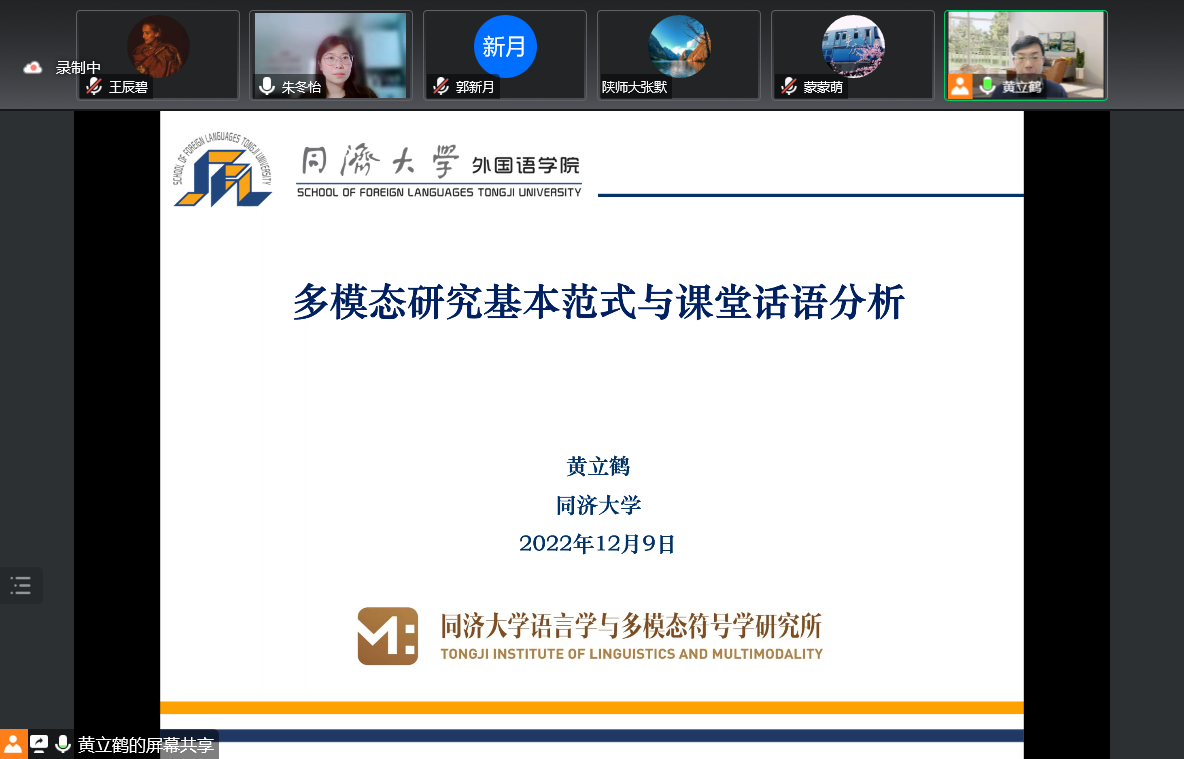 2022年12月9日下午15:00,永利官网于云端平台成功举办了以“多模态研究基本范式与课堂话语分析”为主题的一流本科专业建设论坛,本次论坛由同济大学黄立鹤副教授主讲,永利官网朱冬怡副教授主持,近200名校内外师生参与了交流讨论。