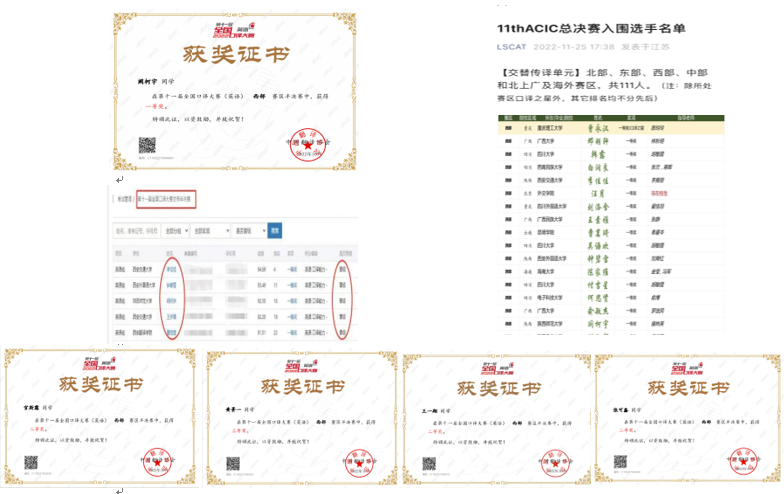 第十一届全国口译大赛总决赛于近期落下了帷幕,永利官网在此次大赛中获得了喜人成绩。全国口译大赛以中国外文局为指导单位,中国翻译协会主办,是国内专业权威度极高的口译比赛。此次大赛自2022年3月启动,受疫情影响,初赛,陕西省复赛,大区赛,全国总决赛分别于5月28-29日,6月25-26日,9月24-25日,12月17-18日在线上举行。