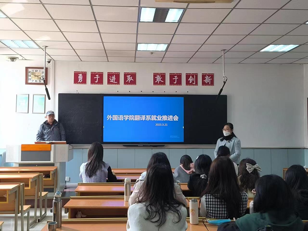 为切实做好永利官网本科生就业指导工作,精准掌握2023届本科生翻译专业毕业生求职进展,永利官网于3月21日下午在教学四楼4102召开2023届翻译专业学生就业工作推进会。学院副院长孙坚、翻译系主任操林英、辅导员屈婉婷与全体翻译专业2023届毕业生共同参加。