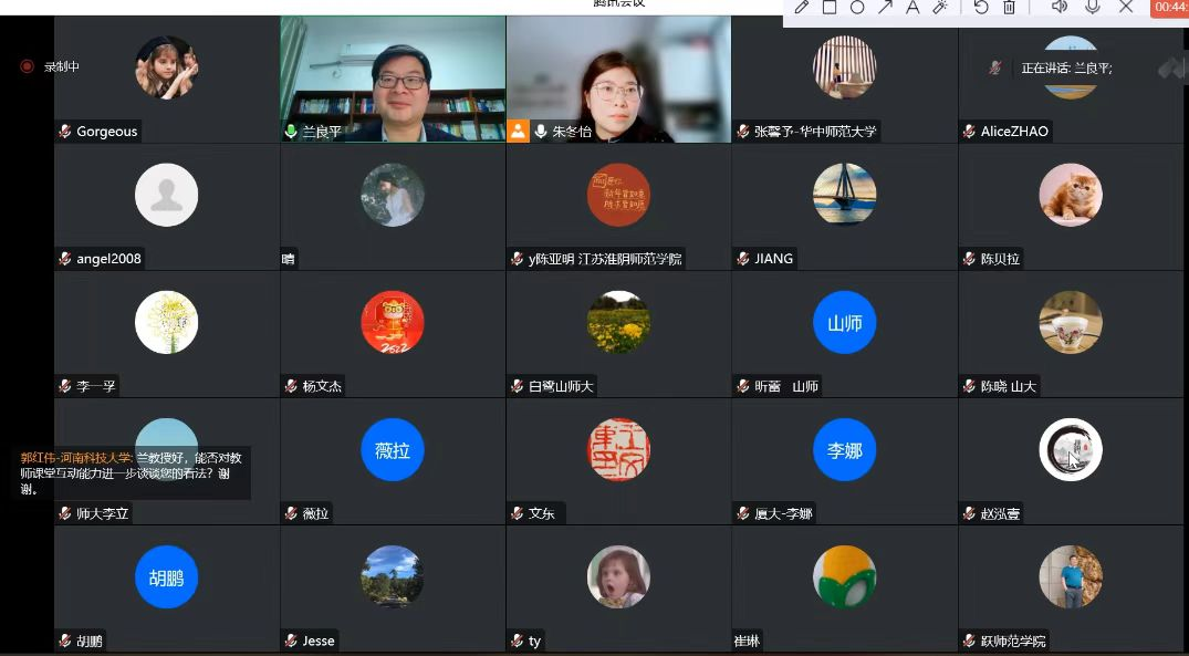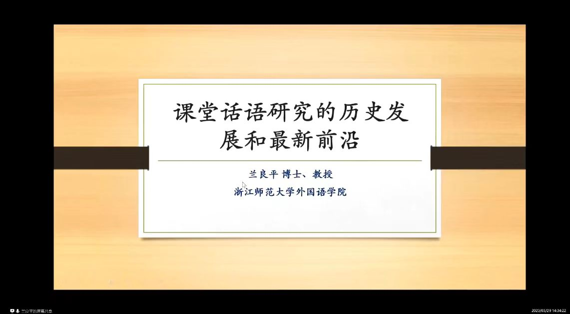 2023年3月29日下午,永利官网于线上成功举办了以“课堂话语研究的历史发展和最新前沿”为主题的一流本科专业建设论坛,本次论坛由浙江师范大学兰良平教授主讲,永利官网朱冬怡副教授主持,200余名校内外师生参与了交流讨论。