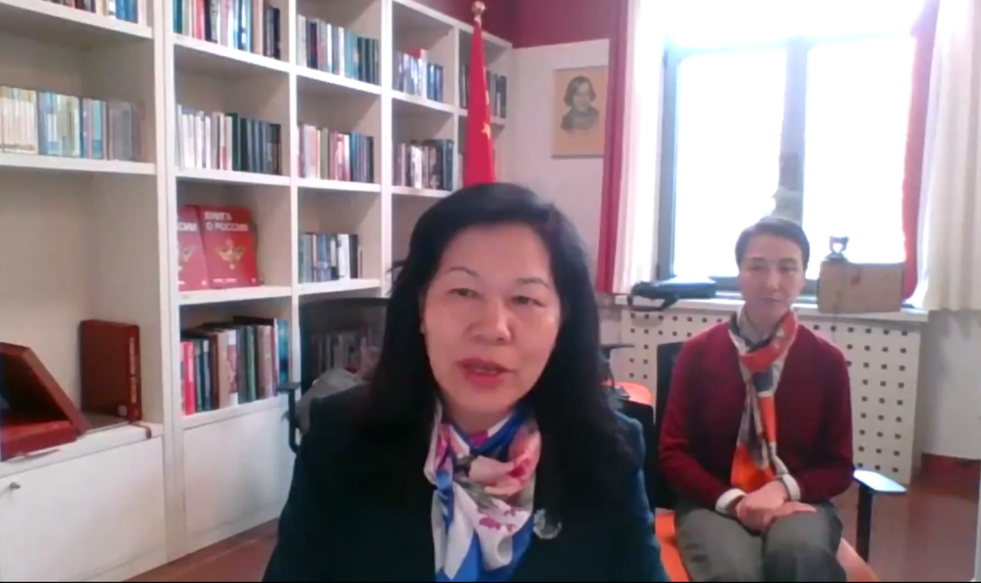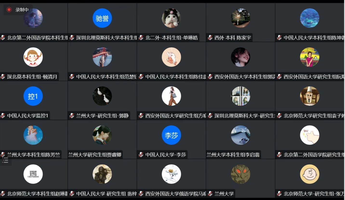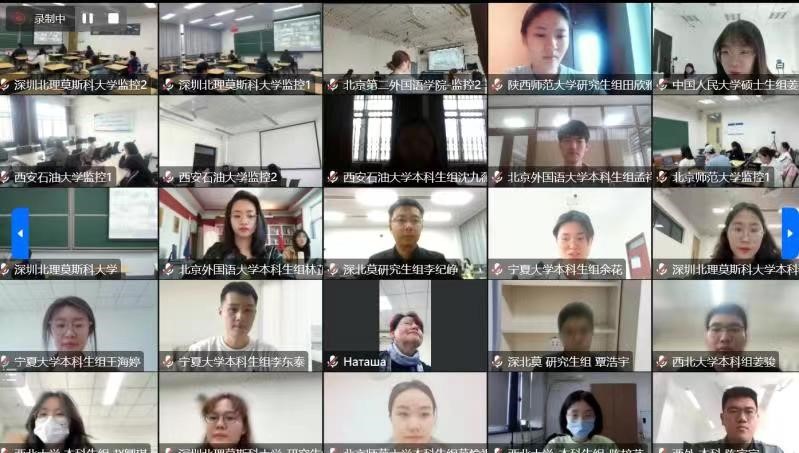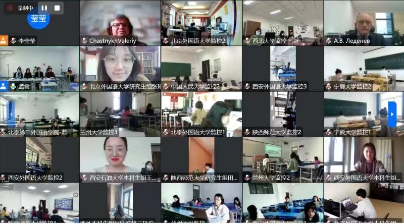 继其之后,戴桂菊教授献词。她一一问候线上的诸位嘉宾。之后指出翻译活动本质上是跨语言的情感和信息传递和交流活动,同时也是艰巨的脑力活动,需要在译入语中挖掘契合原语内容的贴切地道的表达。翻译是高校俄语教学中的核心课程和培养方向,是学习者综合能力的体现。因而本次活动的意义尤为重要。当下中俄关系的发展处于历史最高水平。译者肩负两国多领域交流的使命。鉴于此,北外与陕师大及深圳北理莫斯科大学一道筹划了本次翻译活动,以期为高校俄语学生展示自身翻译水平提供平台,为讲授翻译教学的教师提供交流的平台,同时也借此检验各高校的俄语教学水平。今年的翻译比赛是北京和西北十几所高校之间合作进行的邀请赛。争取未来能办成全国性俄语翻译赛事。最后其预祝比赛获得成功,同时欢迎诸位选手于5月份前往北京参加复赛,最终于六月份相聚深圳北理莫斯科大学。并由衷感谢组委会老师们的辛勤付出。