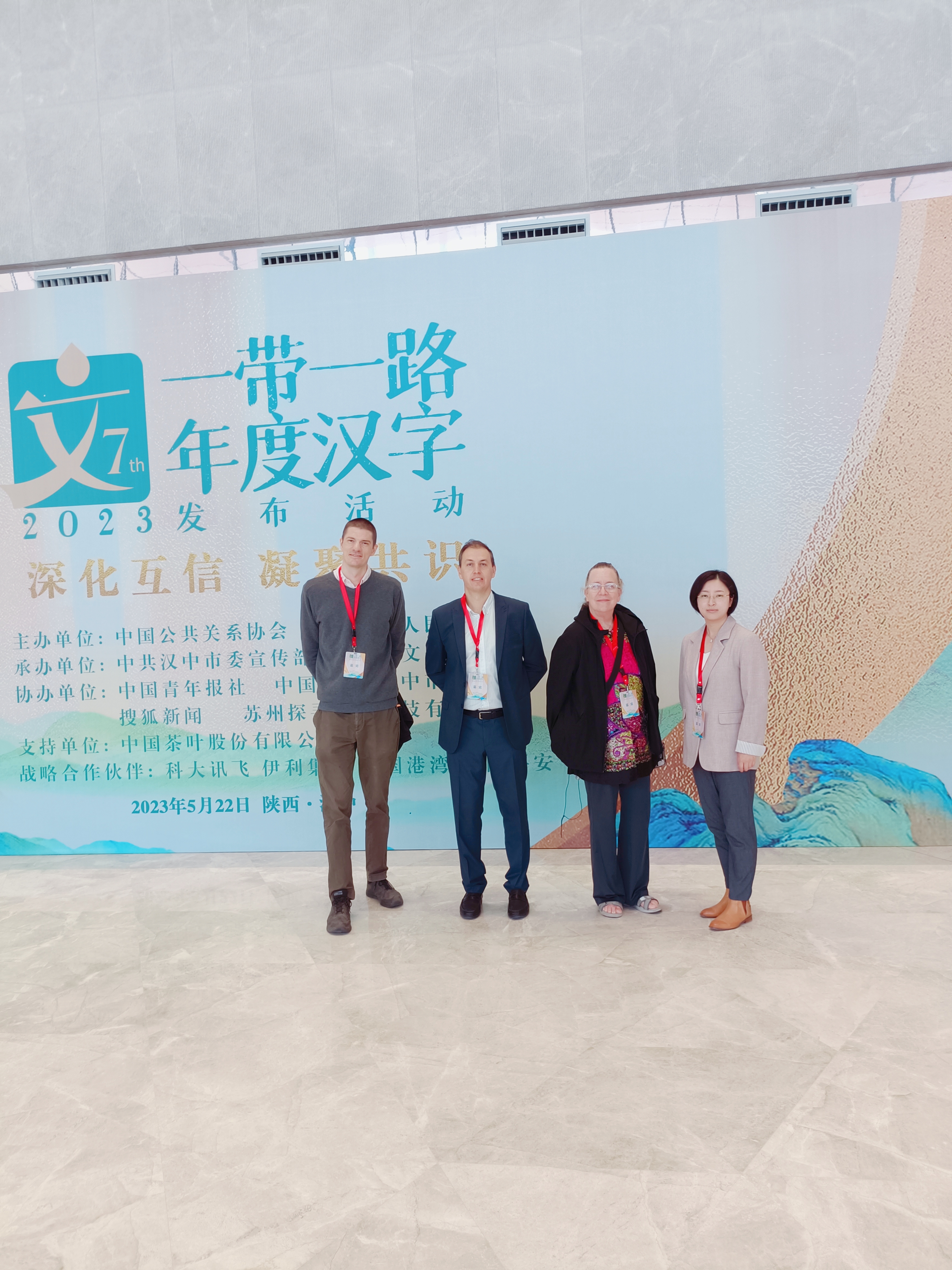 2023年5月22日,由中国公共关系协会和汉中市人民政府主办的2023“一带一路”年度汉字发布大会在陕西省汉中市召开,约有800人参加本次会议。中共汉中市委书记张烨,政协陕西省十二届委员会副主席魏增军,中国公共关系协会会长、国务院新闻办公室原副主任郭卫民出席大会并分别为大会致辞。永利集团3044am官方入口派出由英语系教师范莎博士作为领队,外籍教师Mary Beth Leatherman(美国)、Jack Daniel Bouquet(英国)及Philippe Emmanuel Cousté(法国)为成员的代表团应邀参加本次会议。