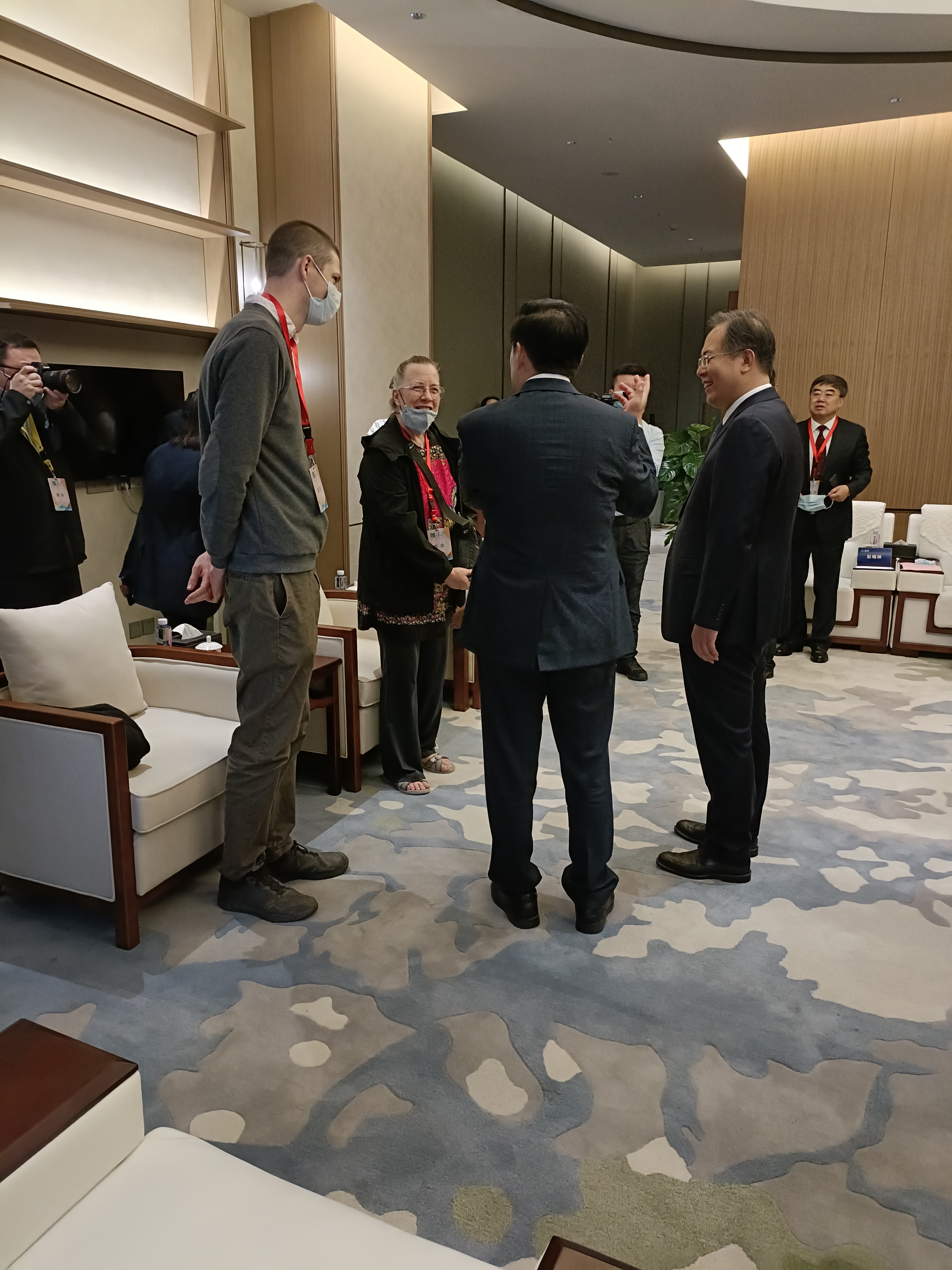 图2 中共汉中市委书记张烨与永利官网外教会面交谈