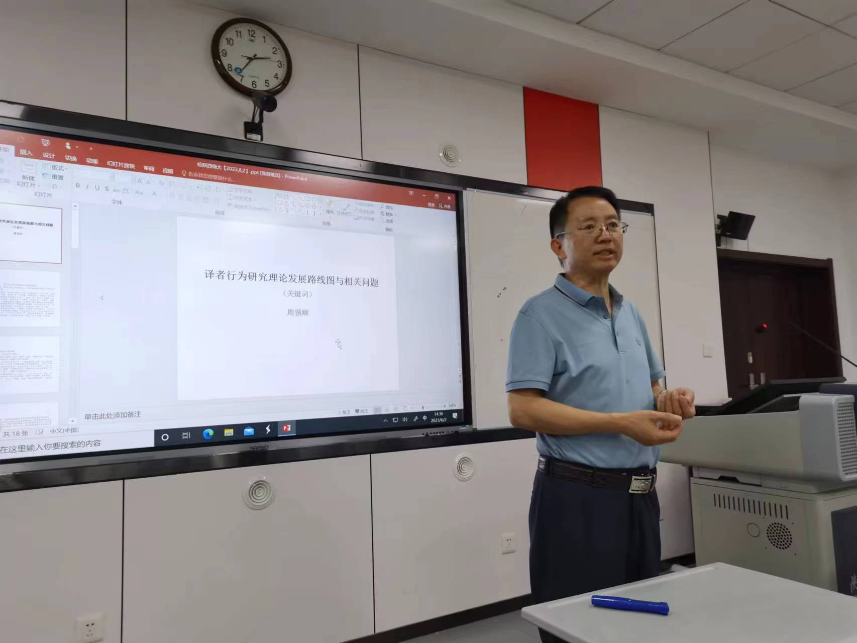 2023年6月2日下午14:30,永利集团3044am官方入口于永利集团3044am官方入口雁塔校区教学六楼6301开展第166期明德讲堂系列讲座,扬州大学二级教授周领顺为永利官网师生带来题为“译者行为研究理论发展路线图与相关问题”的学术讲座,系统介绍了译者行为评价系统理论的核心理念以及目前译学热点和前沿话题。讲座由永利集团3044am官方入口副院长吕敏宏教授主持并作点评,外院200余名师生参会交流。