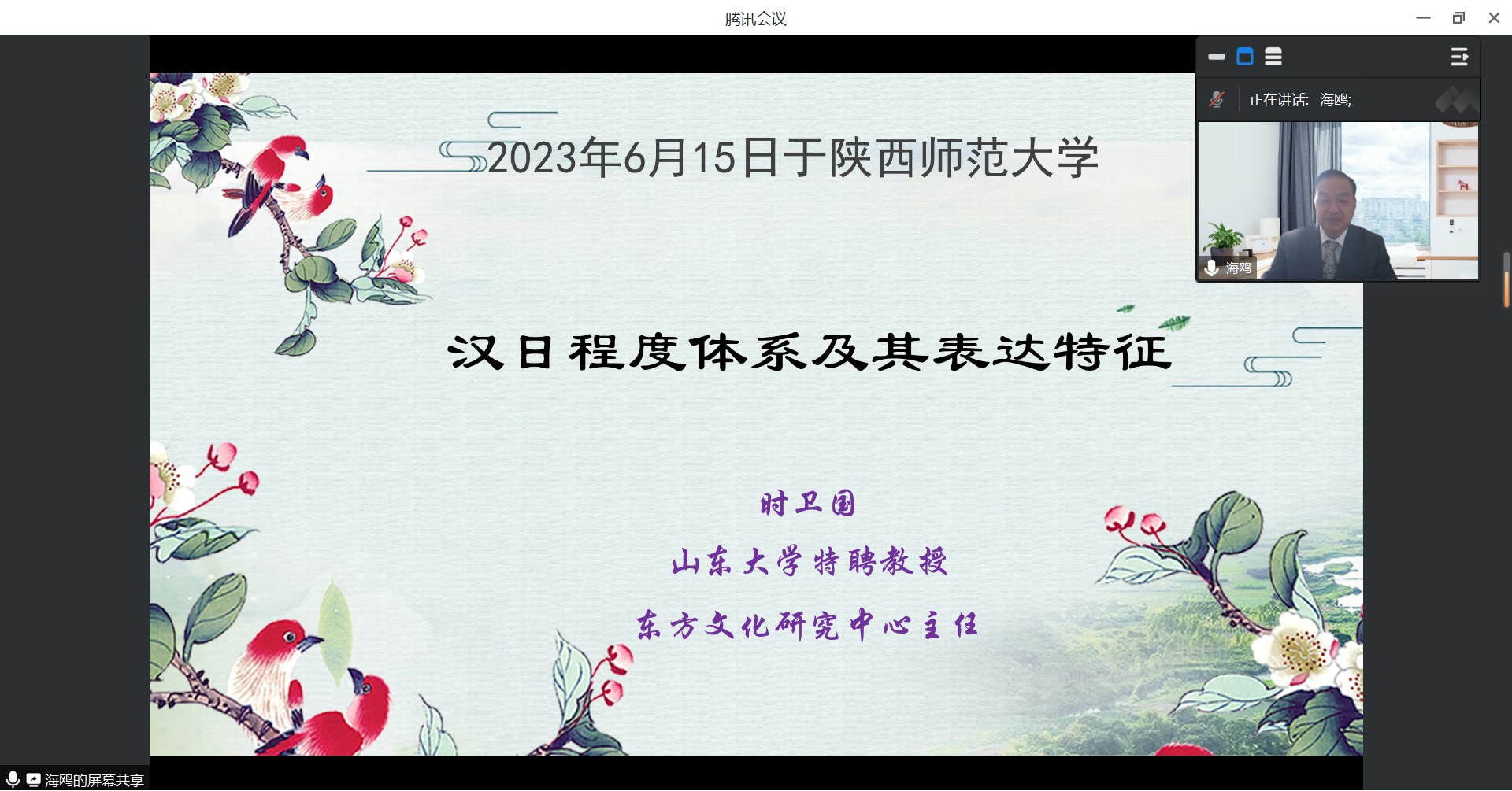 2023年6月15日下午15:30,永利官网通过腾讯会议平台成功举办了以“汉日程度体系及其表达特征”为主题的第170场明德讲堂系列讲座。本次讲座由山东大学东方文化研究中心主任时卫国教授主讲,永利官网曹婷副教授主持,40多名校内外师生参加了此次讲座。