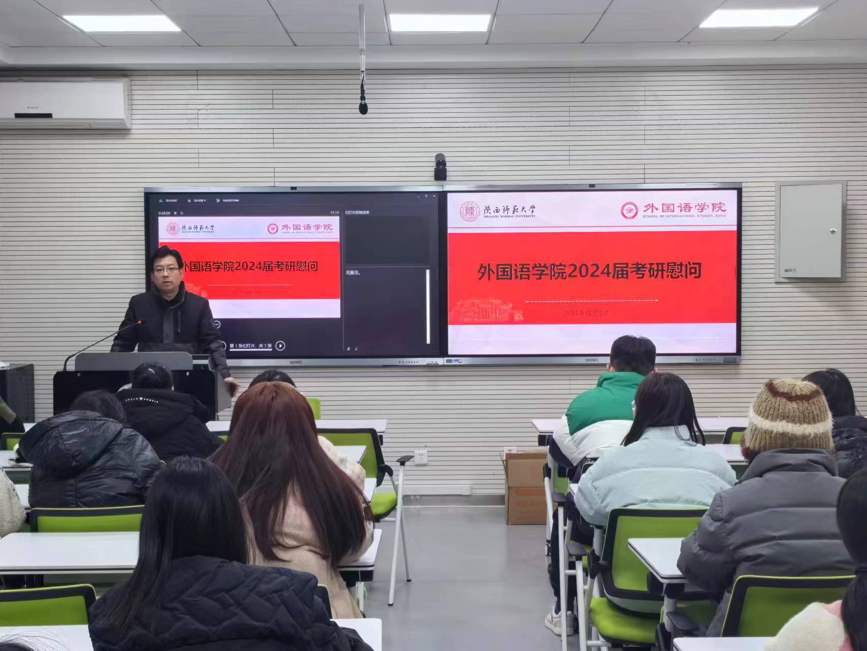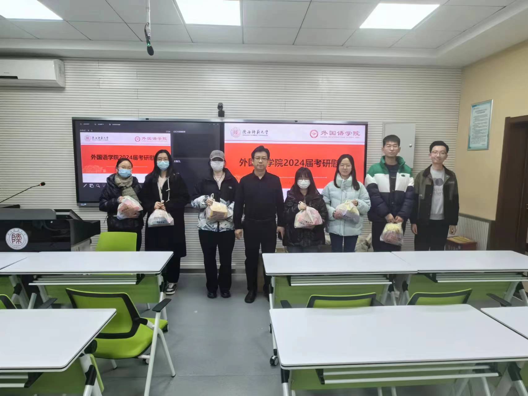 为鼓舞激励2024届考研学子以良好的状态备考冲刺,12月5日下午17:00,学院在6325教室专门开展了2024届考研学生加油慰问会。院长刘全国出席会议并讲话,会议由本科毕业班辅导员高宇轩主持。