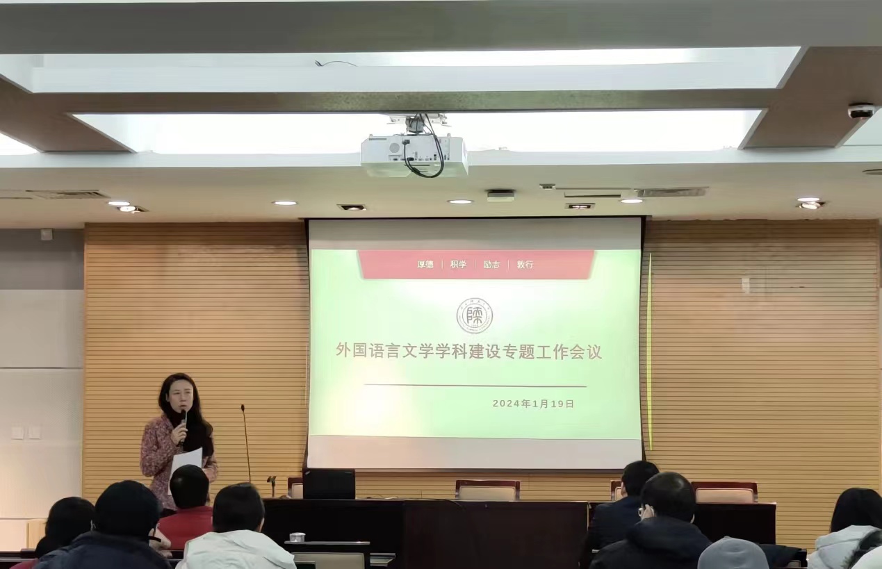 为加强学科建设,提升教学质量,促进学院发展,1月19日上午8:30,永利集团3044am官方入口外国语言文学学科建设专题工作会议在雁塔校区崇鋈楼二层思齐堂举行。本次工作会议由永利集团3044am官方入口副院长曹婷教授主持,院长刘全国教授,党委书记董增云,党委副书记鲁燕、永利集团3044am官方入口学科负责人、各中心负责人及教师代表参加此次会议。