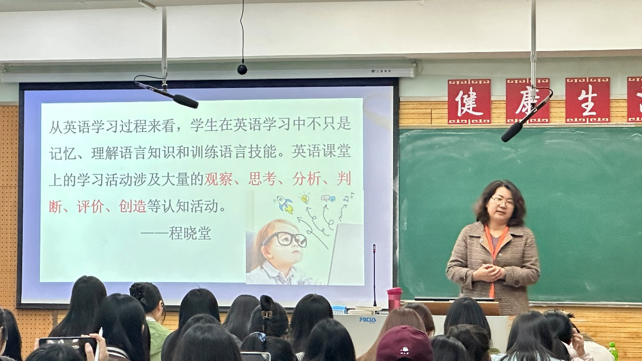 王兰英老师凭借自己对中学英语课堂教学和义务教育课程标准的独到见解,深入浅出地介绍了义务教育英语课程标准中课程性质、学段目标等方面的关键点。王老师强调,时代在不断更新,要以发展的眼光分析不同版本课程标准的嬗变,重点关注新的课程理念,借助英语发展学生的核心素养。