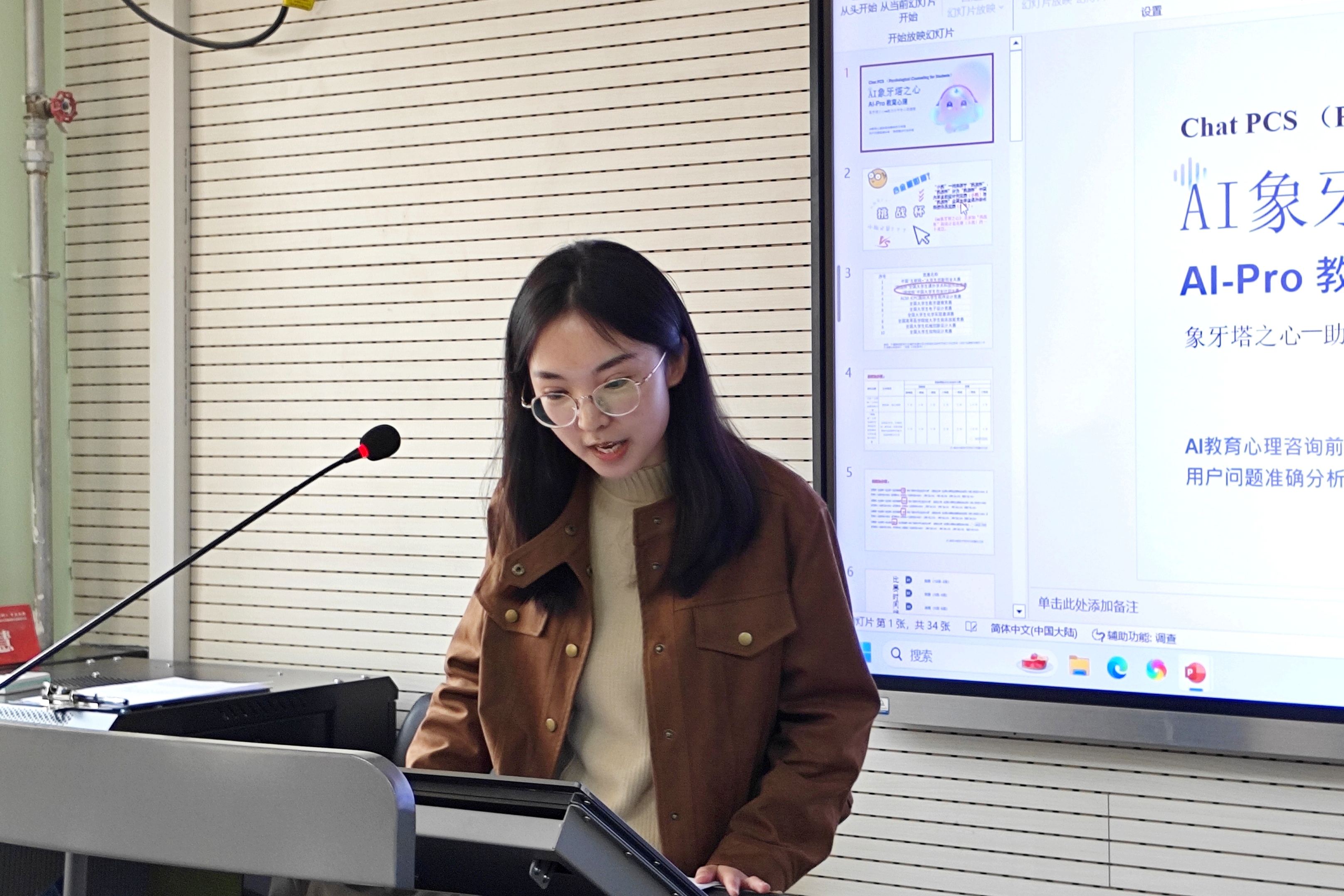 屈林昕同学作小挑项目“AI象牙塔之心”的经验分享。她从比赛含金量、项目筹备流程、项目实践过程、项目价值及发展前景等方面详细介绍了“AI象牙塔之心”项目。她鼓励大家克服畏难情绪,勇于参赛、敢于参赛,不断挑战自己。