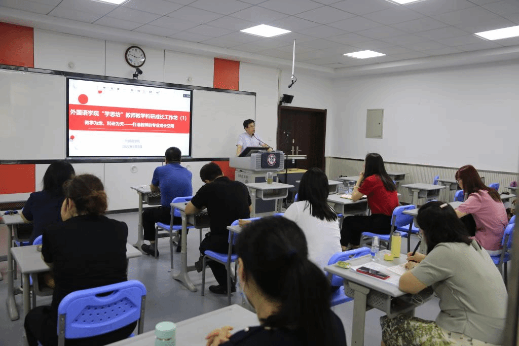 在科研方面,他鼓励教师把外语能力转化为科研能力,融合教学与科研,充分利用“学思坊”平台,助力科研成果产出,以提高学院学科地位,促进学科转型。他对于现阶段取得的科研成果表示肯定,但也明确指出劳动与成果仍存在差距,要继续努力,取得进一步的成就,使科研成果向高精尖方向转化。同时,新课程改革使外语学科与文史哲等学科的联系更加紧密,专业边界模糊,在这样的背景下,刘院长鼓励教师跨学科进行科研,在科研的训练中,促进思维成长,攻读更高学位。