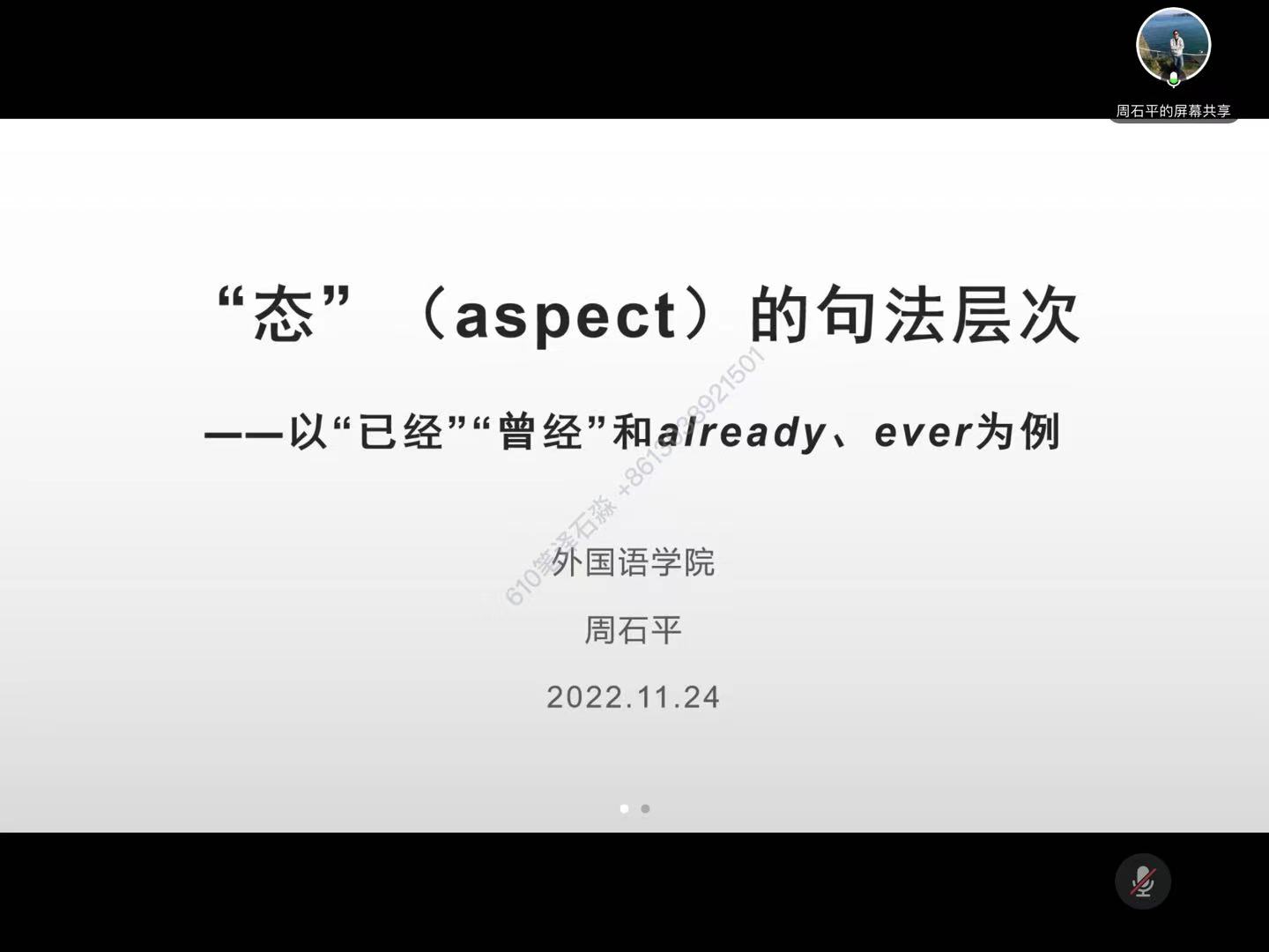 为帮助永利官网师生学习语言学术领域创新思想,打开学术研究视野,永利官网音系学与句法学团队于11月24日下午14:30在腾讯会议平台成功举办了“新文科背景下的英语文学研究与教学”系列第二次沙龙活动。永利集团3044am官方入口周石平博士针对态(aspect)的句法层次展开讲解,贺俊杰教授担任主持,20余名校内外师生参与交流讨论。