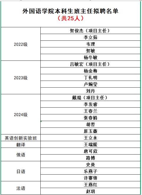 根据《永利集团3044am官方入口班主任聘任和管理实施办法》相关规定,经教师自主申请、教师师德师风考核、学院党政联席会综合评审,现将永利集团3044am官方入口本科生班主任聘任结果公示如下: