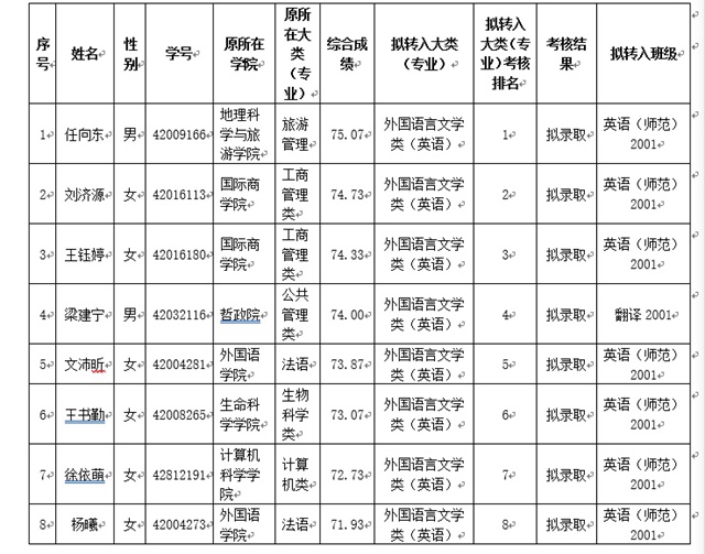 永利集团3044am官方入口2020级专业分流(转入)结果公示